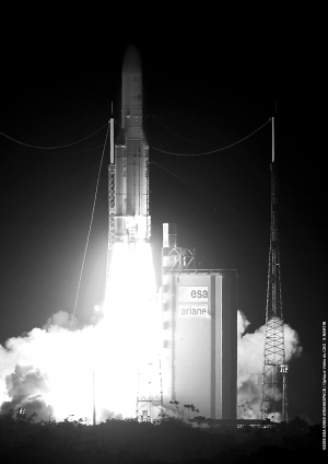 2月12日,一枚欧洲阿丽亚娜5型火箭在法属圭亚那库鲁航天中心发射升空。这枚火箭携带了两颗通信卫星以及两颗军用微型卫星。这是阿丽亚娜火箭第187次发射,也是2009年首次发射。 新华社/法新