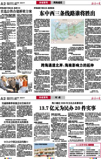 海南日报 本省新闻 跨海通道 002 2009-02-141 2009年02月14日 星期六