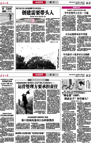 海南日报 本省新闻 003 2009-02-141 2009年02月14日 星期六