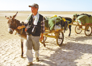 “我曾经靠最原始、古老的运输工具———毛驴车,穿越沙漠。”老林从乔喀塔斯山山口到阿克苏市阿瓦提县,穿越塔克拉玛干沙漠,20多次强渡水深1米多的和田河,步行100公里,完成了这个牵驴走荒漠的计划。