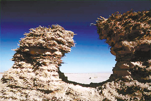 谈及穿越罗布泊的感受,老林告诉记者,“给我印象最深的龙城雅丹,面积有上千平方公里,以造型多变著称。在此,排列成条形状的土台东北向高耸,西南向低矮,十分容易让人联想成游移中的群龙。但龙城是会让人恐惧的,因为你无法看穿它们,每一道土梁高台后边,好像有奇异的生灵在窥觑你,使人望而却步。虽是大白天,也不敢走得太远,特别是刮起大风时,龙城里会回响起魔鬼般的呼啸声,令人毛骨悚然。”