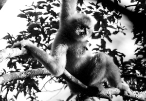 本报霸王岭2月16日电 (记者苏晓杰)今天上午,霸王岭十字路监测点发现,2号雌性长臂猿怀抱幼仔出现在无名岗上,这是其继2007年产仔后再添新丁。目前,海南长臂猿已记录到20只。 上午8时50分,霸王岭长臂猿监测员冯振林、陈少雄、陈贻懋在霸王岭无名岗的一棵树上看到,2号长臂猿正怀抱幼仔坐在树上,神情十分警惕。当雌猿发现监测员后,很快便逃出了监测员的视线。 海南长臂猿是世界四大类人猿之一。成年海南长臂猿身高110厘米左右,体重7公斤至8公斤,其一大特点是双臂展开长于身高。成年雌猿毛色为金黄色,成年雄猿为黑色。海南长臂猿一般7年至8年性成熟开始繁殖,每两年左右繁殖一次,每胎只生一只幼仔。 |