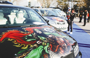 2月16日在展会上拍摄的汽车彩绘作品。 当日,第四届中国国际汽车用品、汽车改装及配件展在北京的中国国际展览中心开幕,来自国内外600多家企业参展。集体亮相展会的100多辆彩绘汽车格外吸引眼球。 新华社发(罗伟 摄)