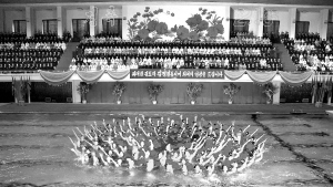 朝鲜中央通讯社2月16日发布的照片显示,花样游泳运动员在朝鲜首都平壤举行的庆祝最高领导人金正日诞辰67周年的活动中表演(2月15日摄)。2月15日,朝鲜在平壤举办中央报告大会庆祝最高领导人金正日诞辰67周年。 新华社/法新