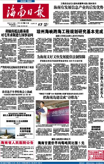 海南日报 头版 001 2009-02-171 2009年02月17日 星期二