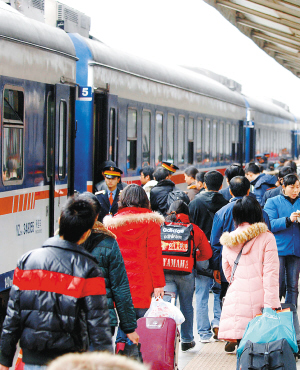 2月18日,返校学生在重庆火车站站台上准备上车。 当日上午10点10分,重庆今年首趟学生专列搭载着916名返校学生从重庆火车站发车,该车学生席位数占到总席位的95%。 新华社记者刘潺摄