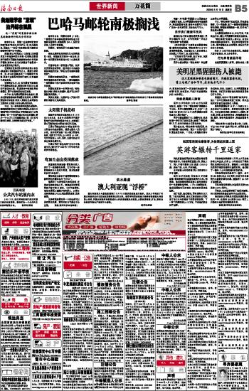 海南日报 世界新闻 013 2009-02-191 2009年02月19日 星期四