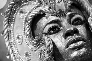 2月20日夜,在巴西城市圣保罗,一名桑巴舞者的脸上涂满金色的油彩。当天,一年一度的巴西狂欢节在巴西各地拉开帷幕。 新华社/法新
