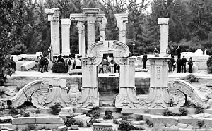 确实是这样,由于圆明园实在太大,虽在1860年遭受了英法联军的毁灭性破坏,但有不少建筑遗迹还保留下来。同治在位时,大概对这片祖业割舍不下,而圆明园也确实残留皇家许许多多痕迹,所以,曾有过一次半途而废的大规模重修。可到了第二次火烧圆明园,残存的13处皇家宫殿建筑再次遭受掠夺焚劫,只留下残垣断壁。1895年康有为游圆明园时,记载说“蔓草断砾,荒凉满目”。八国联军对圆明园的毁灭性打击,使这个皇家宫苑从此消失。