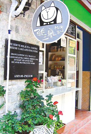 我寻找“张三疯奶茶铺”。为的是见见张三疯,一只大名鼎鼎的猫,我捧着加了香甜葡萄干和脆脆玉米片的奶茶懒懒地坐在欧式风格装修的小店里,欣赏四壁墙上挂的油画,杂物架上有张三疯的雕塑玉像,而张三疯则慵懒地趴在桌子上。据它的主人说,“小时候很疯,长大了却像梁朝伟一样深沉”。我喜欢这只肥肥的大猫,它慵懒的生活姿态告诉我,生活可以不必太累,生命只需要一个享受的过程。