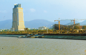 | 陵水旅游房地产业方兴未艾,城区建设突飞猛进,图为海南东部第一高楼珍珠大厦。