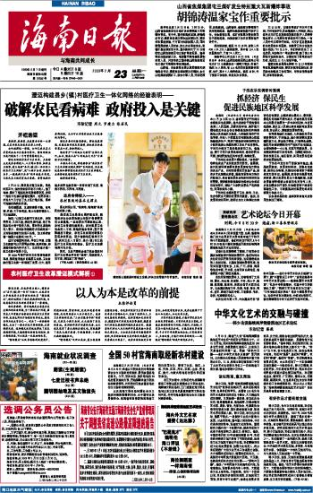 海南日报 头版 001 2009-02-231 2009年02月23日 星期一