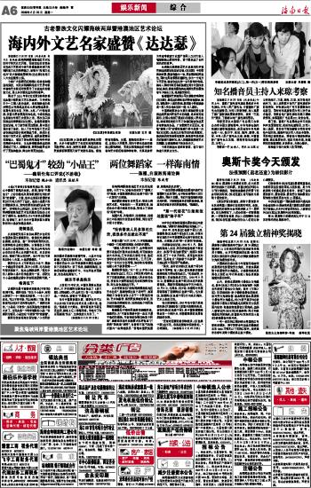 海南日报 娱乐新闻 006 2009-02-231 2009年02月23日 星期一