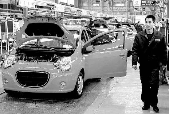 2月22日,一名技术人员正在生产线上巡视。 在全球汽车行业面临严峻考验的情况下,拥有完全自主品牌的浙江吉利集团,依靠战略转型等举措成为车市亮点。2008年,吉利实现整车销量22万多辆,出口增长79.8%,全年纳税总额超过10亿元。 目前,曾有“廉价车代言人”之称的吉利汽车,开始走上转型之路———从“造百姓买得起的好车”转变为“造最安全、最环保、最