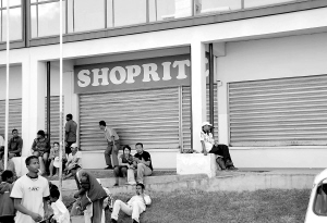 在马达加斯加首都塔那那利佛,一家超市闭门歇业。自今年1月26日大规模骚乱和2月7日反对派领导人拉乔利纳自行宣布出任“总统”至今,马达加斯加政治危机愈演愈烈,社会经济也遭受重创。 新华社记者 徐速绘 摄
