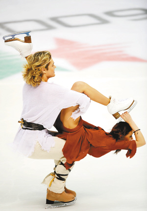 以色列选手亚历山德拉·扎莱特斯基(右)/罗曼·扎莱特斯基夺得冰舞冠军。