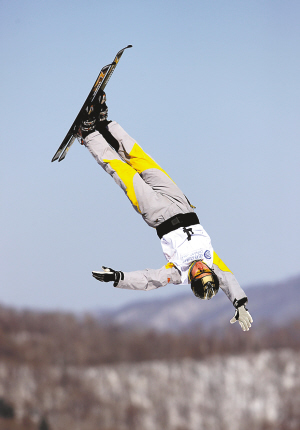 自由式滑雪冠军获得者中国队选手贾宗洋在比赛中。本专栏照片由新华社发