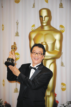 日本导演泷田洋二郎凭影片《送行者:礼仪师的乐章》摘得最佳外语片奖后举起“小金人”。 本版照片均由新华社发