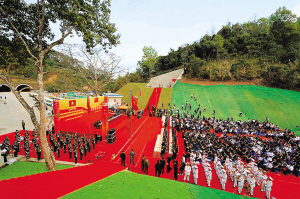 2月23日拍摄的庆祝中越陆地边界勘界立碑圆满结束的仪式现场。 当日,中越双方在广西凭祥友谊关口岸举行仪式,共同庆祝陆地边界勘界立碑圆满结束。戴秉国国务委员和越南副总理兼外长范家谦分别代表两国政府出席仪式并致辞。 新华社记者 周华 摄