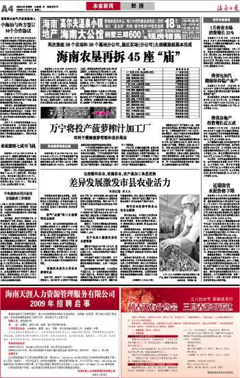 海南日报 经 济 004 2009-02-241 2009年02月24日 星期二