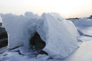 新疆博斯腾湖冰雪逐渐消融,湖面上出现了“推冰”奇观(2月23日摄)。据了解,由于今年博斯腾湖春季气温回升较快,冰面昼化夜冻,在风和湖水的作用下出现了“推冰”景观。 新华社发