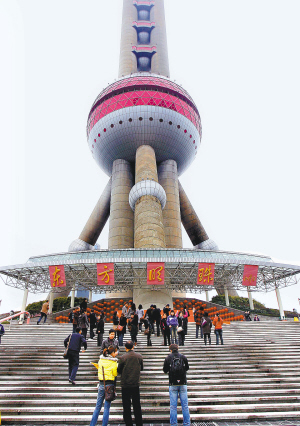 2月24日,游客在东方明珠塔下游览。 当日起至4月28日,上海18个景点实行周二门票半价优惠。逢周二游客前往东方明珠、野生动物园、环球金融中心观光厅、金茂大厦观光厅、上海国际赛车场、上海科技馆、杜莎夫人蜡像馆等18个景点,均可享受半价门票的优惠。据悉,当日东方明珠景点的游客数量同比增加了两倍。 新华社发