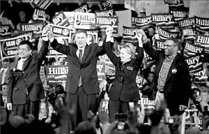 | ←骆家辉(左)不遗余力为希拉里站台拉票 |