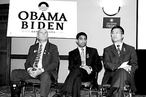 | →骆家辉(右)改为奥巴马选举出力