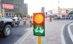| 三亚市区主要交通路口都安装了边道指示灯。本报记者 程范淦 摄