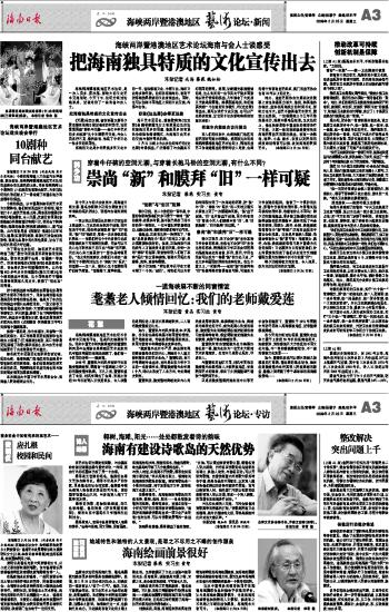 海南日报 海峡两岸暨港澳地区 艺术 论坛·新闻 003 2009-02-251 2009年02月25日 星期三