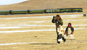 | 青藏铁路沿线磕头的信徒。在50年来波澜壮阔的西藏民主改革中,废除了政教合一制度,恢复了宗教的本来面目,有效保障了西藏人民宗教信仰的自由。 新华社记者 觉果 摄