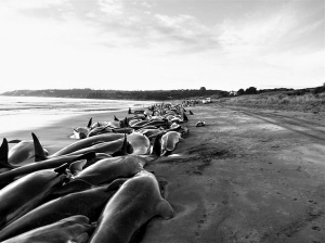3月2日,人们试图救助搁浅在澳大利亚金岛沙滩上的鲸鱼和海豚。194头巨头鲸和7只海豚从3月1日晚开始在澳大利亚大陆和塔斯马尼亚岛之间的金岛沙滩上搁浅,目前约140头鲸鱼已经死亡。澳大利亚有关方面正在想方设法救助仍然活着的约50头鲸鱼。 新华社/法新