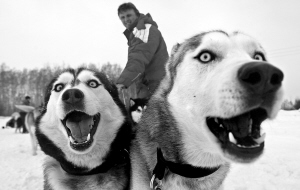 3月1日,在距俄罗斯首都莫斯科40公里的丘尔科沃,一名男子带着雪橇犬训练。一个名为“和谐爱狗人”的俱乐部的会员在为即将召开的雪橇狗竞赛做准备。 新华社/法新