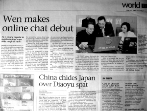 3月1日,新加坡最大的英文报纸《海峡时报》对温家宝总理与网民在线交流进行了综合报道。 新华社发