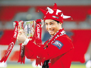 | C·罗纳尔多举起英格兰联赛杯。