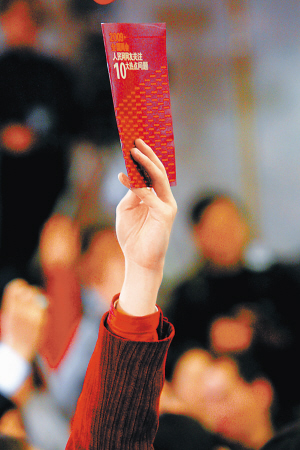 | ↑与大多数努力伸手希望能“抢”到提问机会的记者相比,这位同行就很会使巧劲。手中举着自己媒体印发的2009两会宣传册,在众多素手中显得很抢眼,即便没有争取到提问机会,可也给自家媒体做了一番广告。