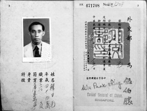 记者看到,护照和“人民出国许可证”的文字均为繁体字。护照内有“外交部为发给护照事兹有韩日光取道前往中国香港及新嘉坡应请友邦地方文武官员妥为照料,遇事襄助须至护照者。中华民国卅七年一月十五日”等字样,发照机关长官签印落款为:伍伯胜。