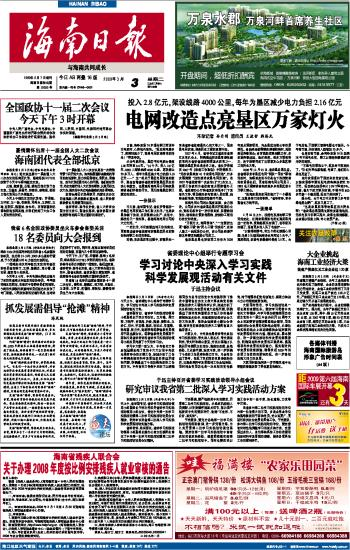 海南日报 头版 001 2009-03-031 2009年03月03日 星期二