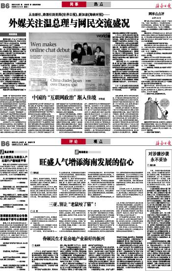 海南日报 热 点 014 2009-03-031 2009年03月03日 星期二