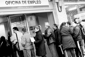 3月3日,在西班牙首都马德里,求职者等待进入一个官方职业介绍中心。据报道,今年二月份西班牙的失业人数为348万,创13年来新高。有关专家预测,到今年夏天,西班牙的失业人数将达到400万。 新华社/路透