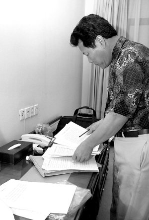 ↑3月3日,海南代表团驻地一片繁忙景象。代表们忙于看材料、写建议,积极热情履行人民代表的职责。 全国人大代表余永华来自基层,目前担任海南省万宁市兴隆华侨农场橡胶第四分公司党总支书记、经理。他正在准备一份关于归侨、侨眷医疗保障方面的发言。