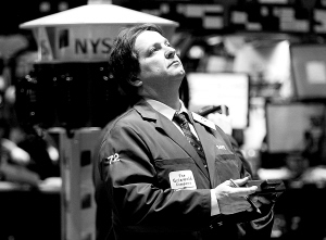 3月2日,股票交易员在美国纽约证券交易所内工作。纽约股市当日遭遇重挫,道琼斯指数自1997年4月以来首次跌破6800点大关,标准普尔500指数逼近700点关口。 新华社/路透