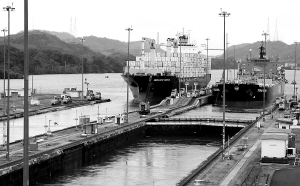 | 3月2日,两艘轮船准备通过巴拿马运河上的米拉弗洛雷斯水闸。巴拿马运河管理局3月3日正式接收运河扩建项目主体工程———第三套船闸设计及建设项目的标书,3家国际财团递交了各自的设计方案及报价。这3家财团由来自11个国家的21家公司组成,其中包括中国武昌船舶重工有限公司。 新华社记者王沛摄 |