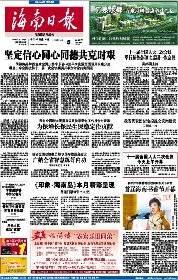 海南日报 头版 001 2009-03-051 2009年03月05日 星期四
