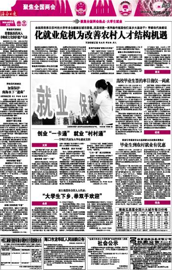 海南日报 聚焦全国两会热点·大学生就业 003 2009-03-051 2009年03月05日 星期四