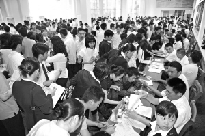 “受金融风暴影响,就业压力越来越大,大中专毕业生之所以青睐市县招聘会,主要原因是市县一级招聘会竞争相对要小一些。”文昌市就业局局长潘先福说。