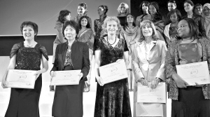 3月5日,2009年度世界杰出女科学家奖的5位获奖者(从左到右)加拿大多伦多大学化学系教授欧热尼娅·库马切娃、日本大学人文和科学院教授小林昭子、英国剑桥大学物理系教授阿希妮·M·唐纳德、巴西圣保罗大学天文、地球物理和大气科学院的比阿特丽斯·巴布埃和南非罗德斯大学化学系教授泰贝洛·尼奥孔在法国巴黎出席颁奖仪式。 该奖由联合国教科文组织和法国欧莱雅集团联合设立,今年的5位女科学家因在癌症治疗、分子材料和宇宙星系研究等方面的突出贡献而获奖。 新华社记者张玉薇摄