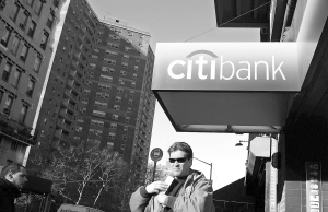 3月4日,一名顾客从纽约的一个花旗银行营业所走出。曾经是全球市值最大银行的花旗集团股价3月5日一度跌破1美元。据彭博社的统计,花旗目前在全球银行业的市值排名已落至第184名。 新华社/路透