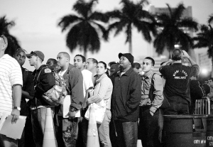 3月6日,据美国劳工部公布的数据,2月份美国非农业部门就业岗位减少65.1万个,失业率上升为8.1%,为1983年底以来的最高水平。这是2009年2月2日美国佛罗里达州迈阿密市的求职者排队申请消防员工作岗位的资料照片。 新华社/路透