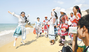 组织姚火头湾村妇女来三亚旅游的李先生说,姚火头湾村是靠近越南边境的一个偏远的苗族村寨。这一两年来,村民们凭借当地独特的气候和土壤,种植了许多经济作物,日子逐渐好了起来。“这次来三亚旅游,所花费用是个人出一半,村里出一半,目的是让村民更多地认识外面的世界,增强发展经济的信心。”李先生解释说。